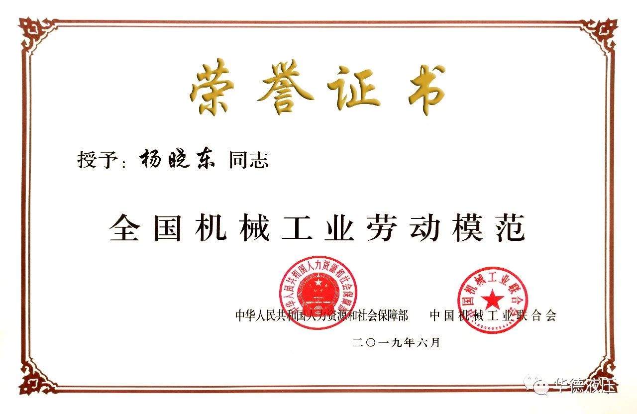 華德員工楊曉東榮獲全國(guó)機(jī)械工業(yè)勞動(dòng)模范稱號(hào)